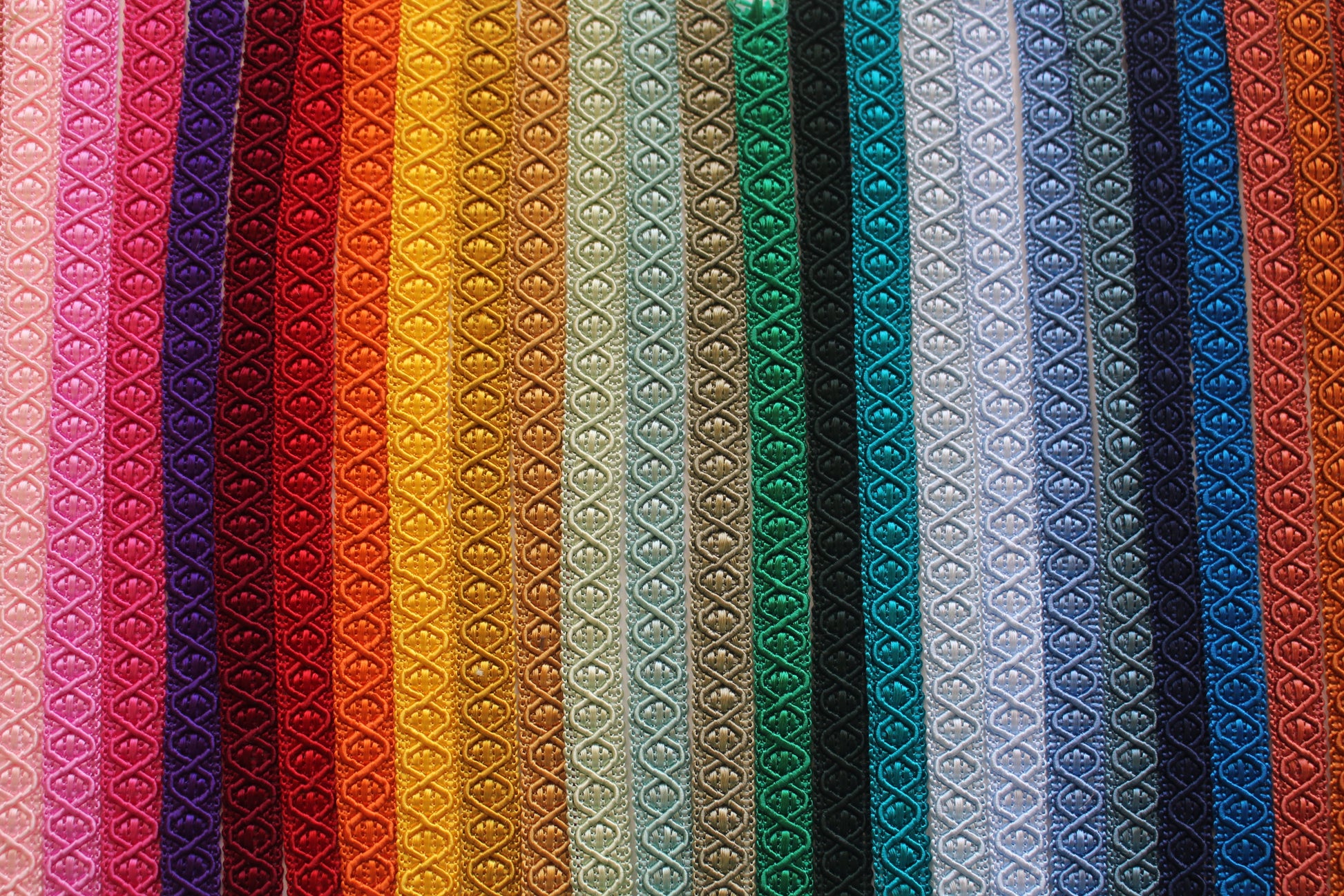 Very pretty 12mm wide braid with a diamond design. There are 42 gorgeous colours to choose from. It's substantial enough for furnishings and upholstery but also quite flat and fine, making it perfect for clothing, costumes, millinery and papercrafts too.