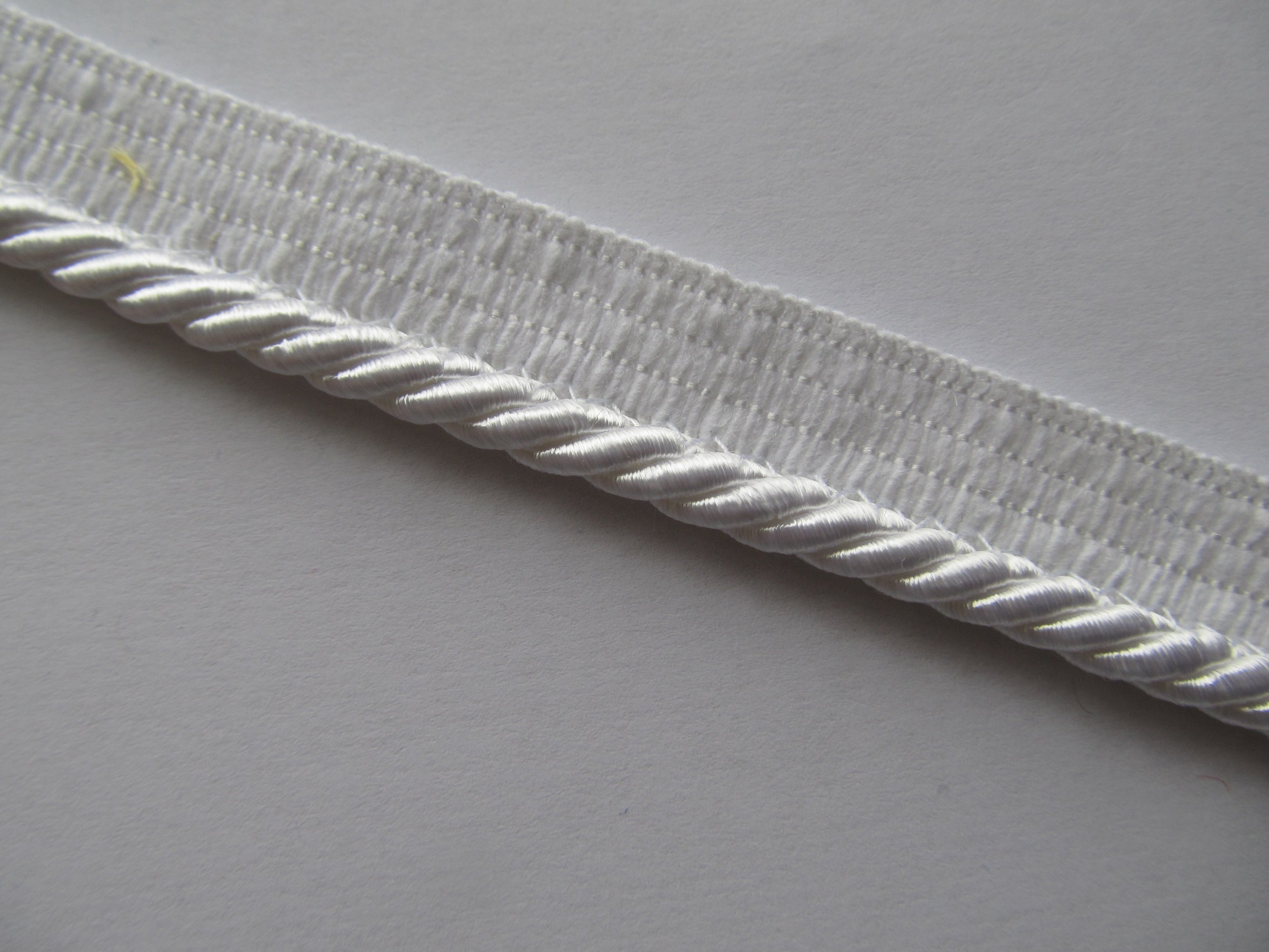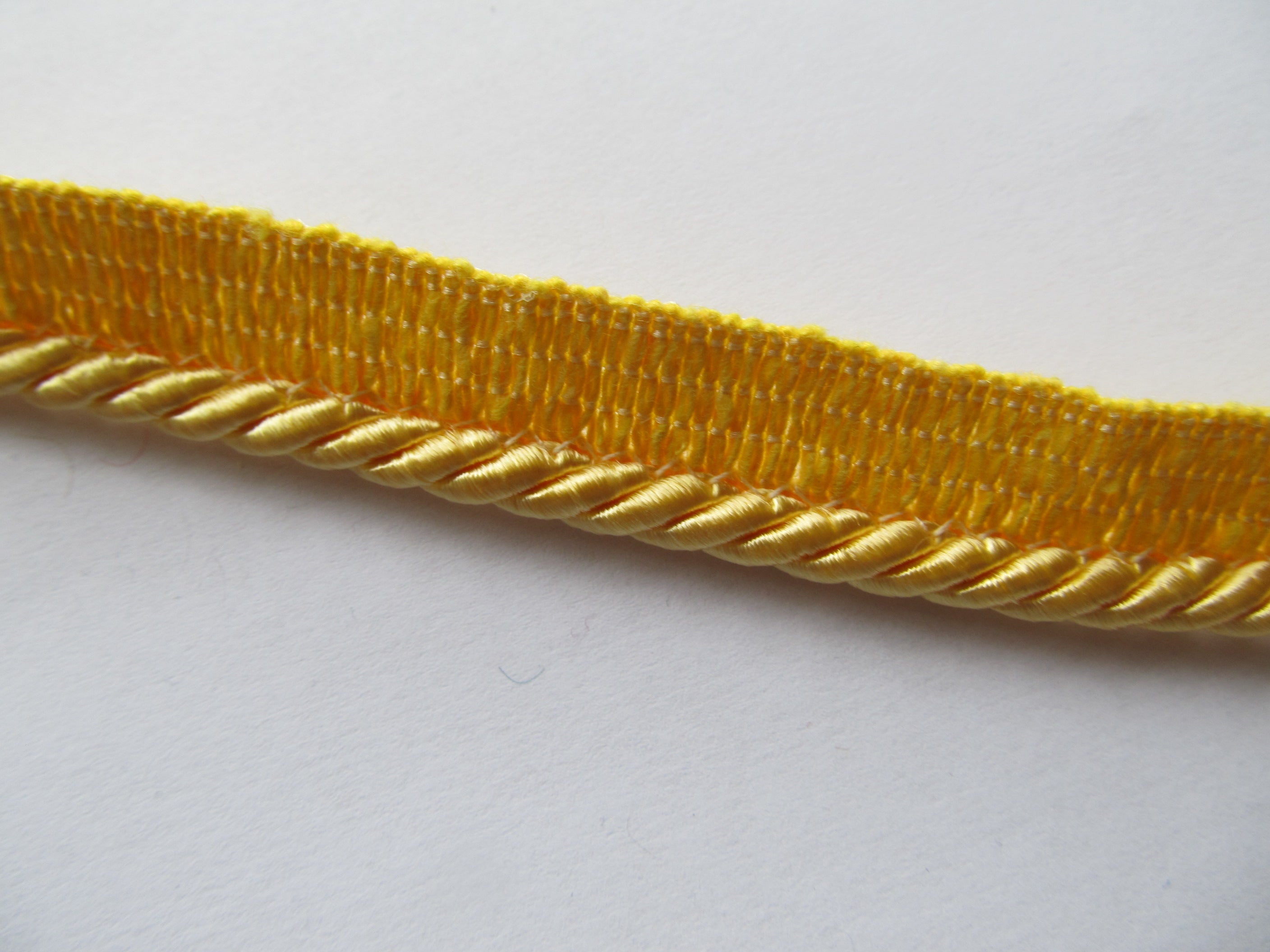 High quality silky furnishing cord with flange. The cord is 5mm wide and it is attached to a flange, enabling it to be neatly inserted into a seam, eg for a cushion. The whole trim including the flange is about 18mm wide. It is made from a cotton and viscose mix (49% cotton, 51% viscose). The viscose provides a lovely sheen and the cotton content gives it a good weight. Washable at 40 degrees (hand wash recommended). You can purchase by the metre or obtain our usual generous discounts when you buy a longer length or whole 20 metre reel. We also have a plain 5mm cord and plain and flanged 8mm cords available. All of the cords match our popular silky scroll and ornate braids.