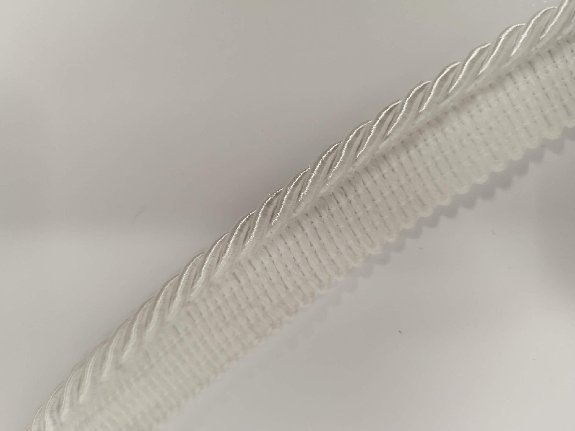 High quality 6mm flanged cord which matches our beautiful viscose brush fringe This is a beautiful trim and is the perfect finishing touch for cushions. The cord itself is 6mm wide and is attached to a flange, making the whole trim approx 2cm across. 100% viscose with a silky lustre. Washable at 30 degrees (hand washing recommended)